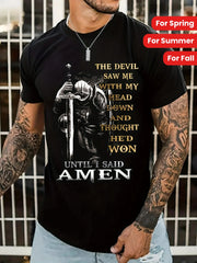 [Cotton Graphic Tee] 100% Cotton Men's Knight & Slogan Graphic Tee | Breathable Crew Neck T-Shirt with Medieval Soldier Design